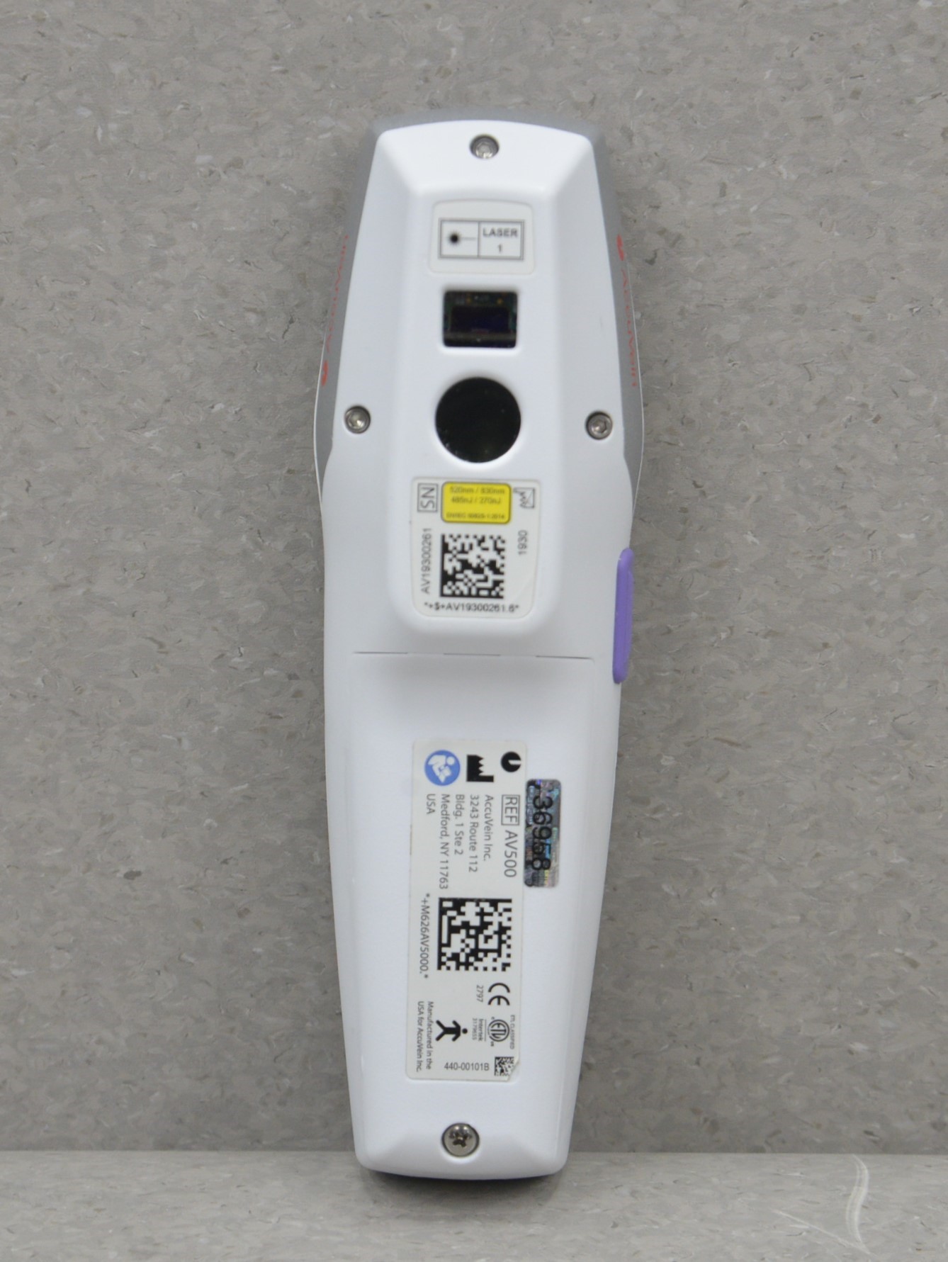 It also contains a high grade laser camera projector that helps ensure in focus projection while maintaining a small, lightweight design. While many vein finders require maintenance to ensure continual, camera alignment Accuvein AV500 Vein Finder Transilluminator does not. In addition, it uses a low power laser so that it can be used without eye protection.