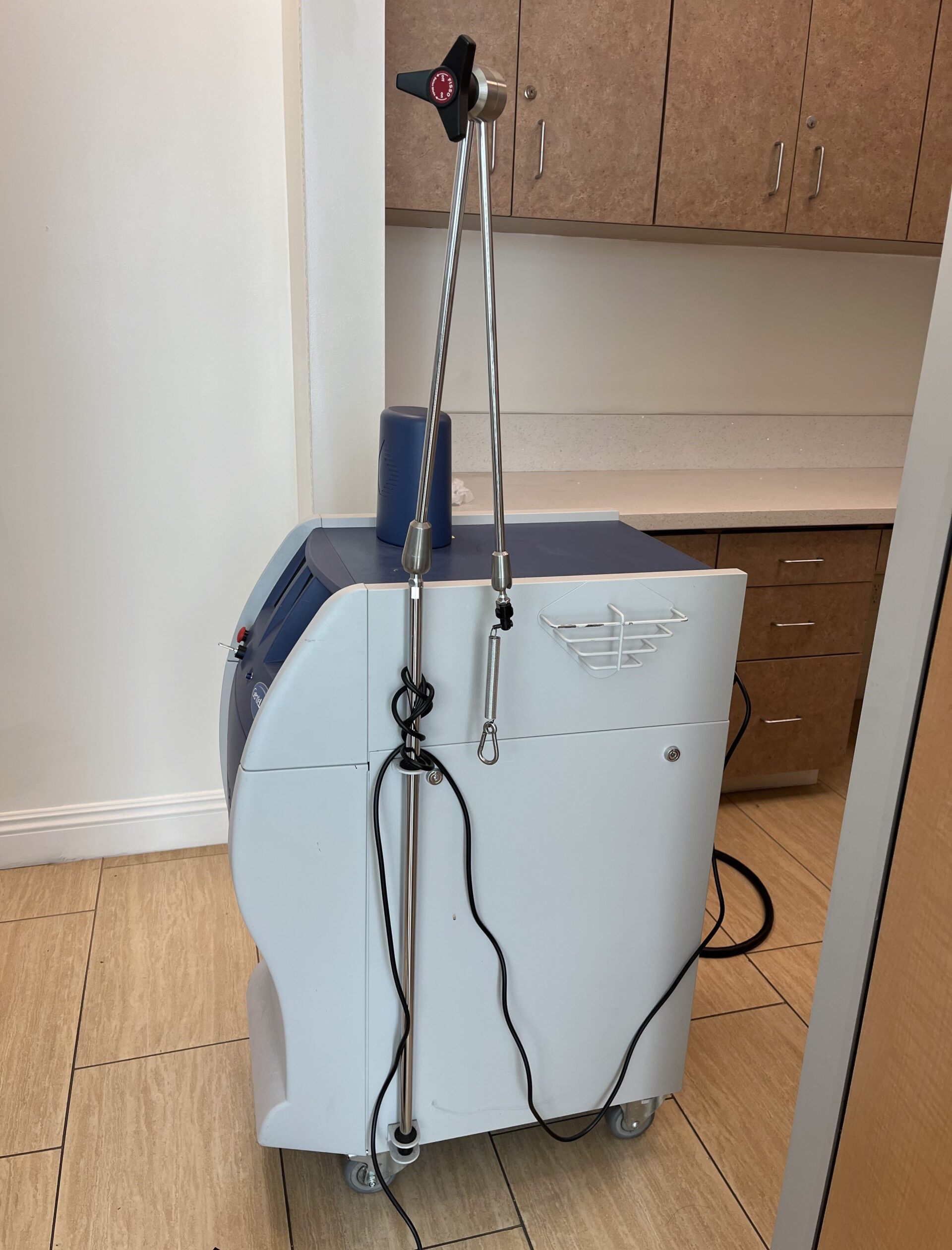 - Beam Delivery: Lens-coupled 2.5 m optical fiber with handpiece