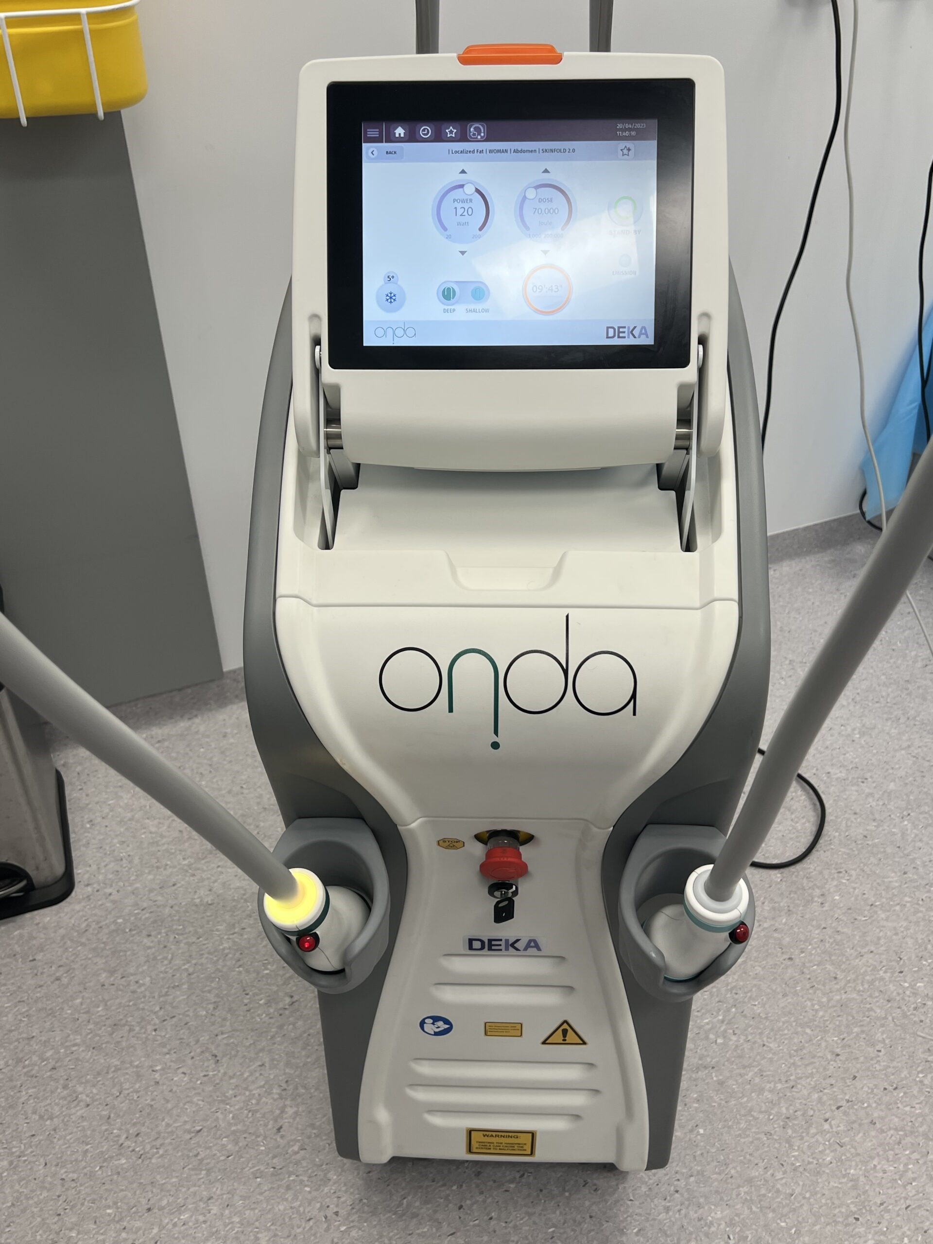 Deka Onda Coolwaves Laser is utilized for non-invasive body contouring, targeting cellulite, localized fat pockets, and skin laxity effectively. It operates by penetrating deep into the skin, disrupting fat cell membranes, stimulating connective tissue, and inducing collagen production, resulting in tighter and toned skin. The integrated cooling system ensures comfort during treatments.