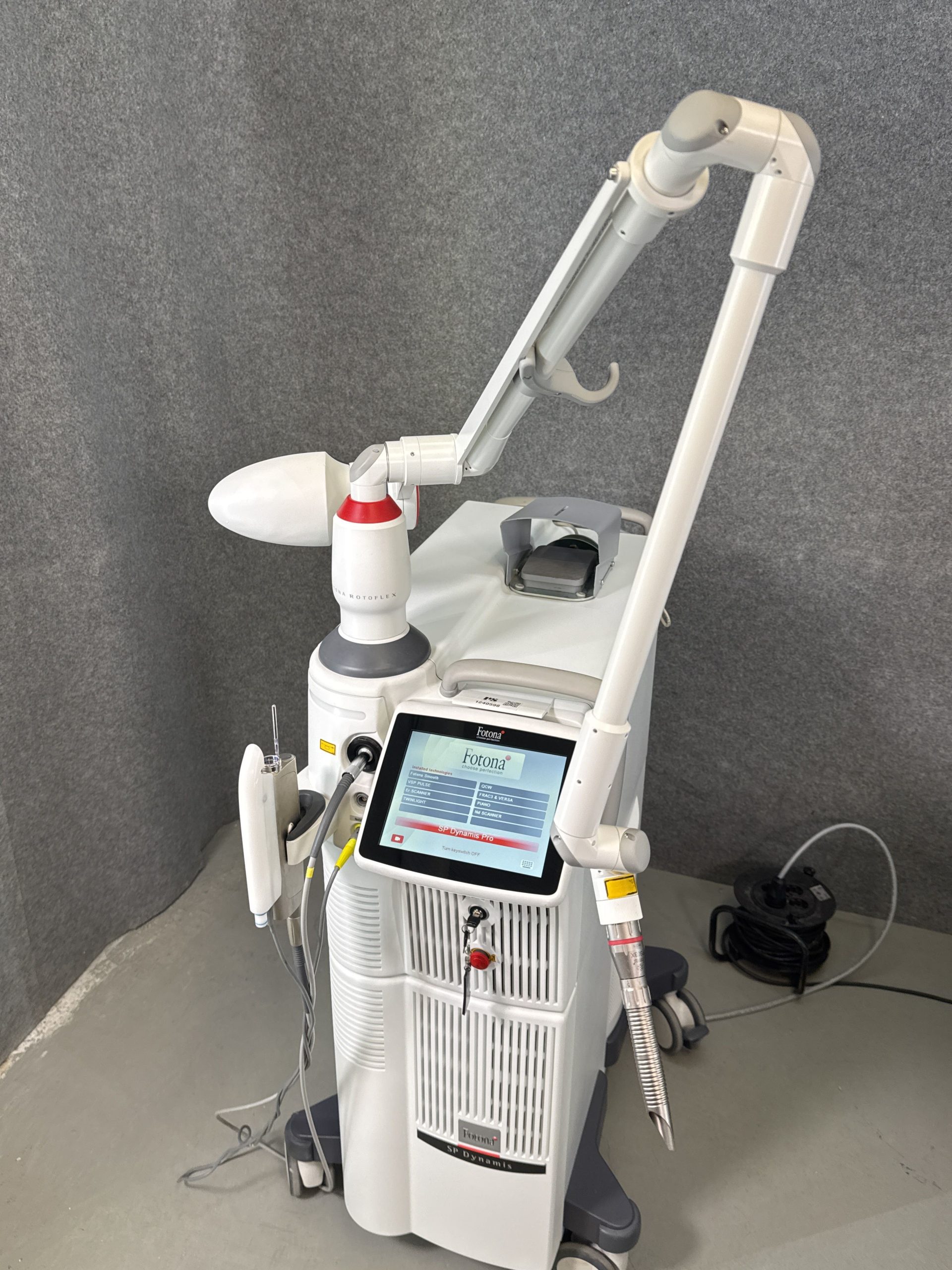 The Fotona SP Dynamis Pro Multi-Application Laser is a premier choice for medical and aesthetic professionals seeking a state-of-the-art laser solution. Its dual-wavelength capabilities, customizable settings, and focus on patient comfort make it a versatile and effective tool for achieving outstanding results. Whether used for advanced skin treatments or complex medical procedures, the Fotona SP Dynamis Pro delivers exceptional performance and enhances overall patient care, setting a new standard in laser technology.