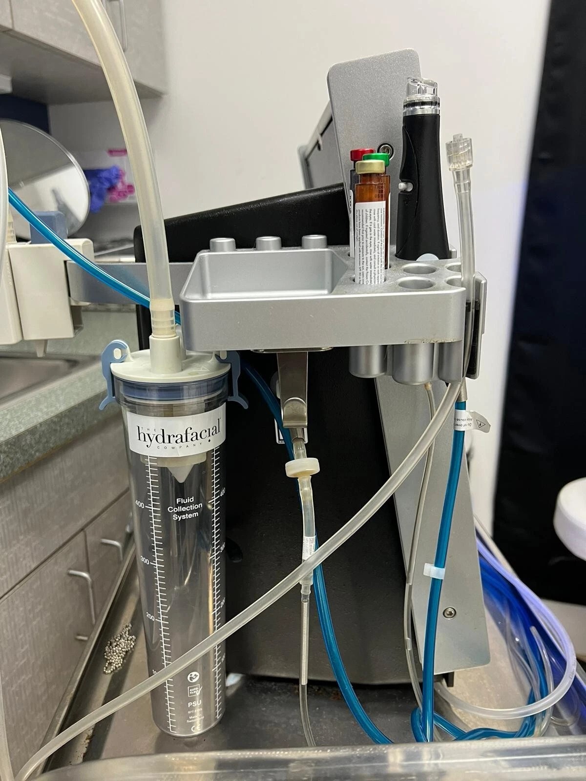 Compact countertop version of the HydraFacial System. Device is equipped with an intuitive touch screen, four serum ports and built-in storage. It also has a discreet treatment tray that keeps necessary supplies close at hand and a self-cleaning mode that saves preparation time between clients. Perfect addition for a spa, or aesthetics office. GREAT for a location with an established HydraFacial clientele that wants to build a mobile business/home party business as well.