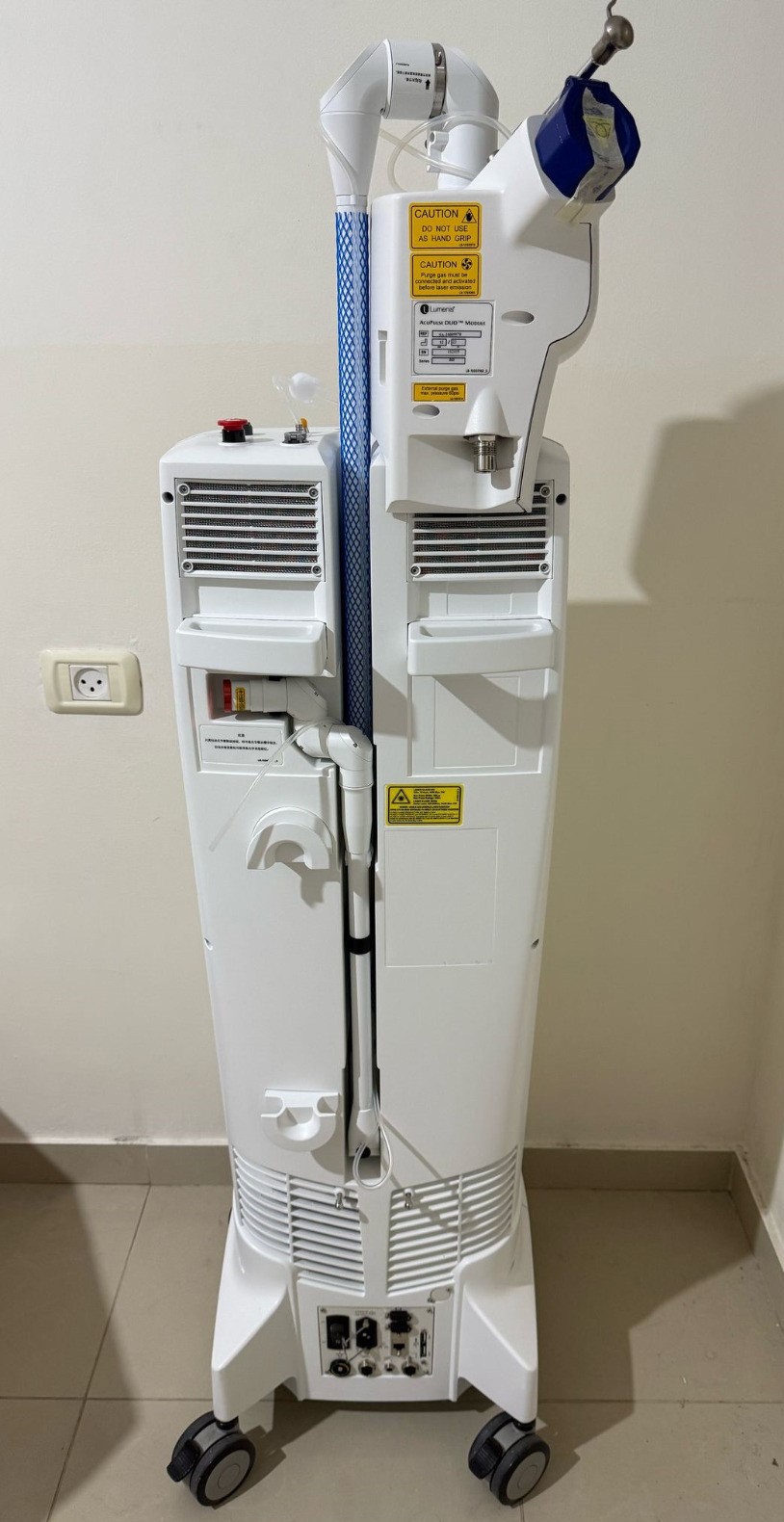Lumenis AcuPulse DUO CO2 laser, a unique combination of CO2 laser fiber and free beam energy delivery in a single device. With the ability to utilize the two valuable modalities on the same Laser console there is no need to compromise. The precision of the Digital AcuBlade alongside the flexibility of the fiber allows you to address surgical challenges and to treat valuable anatomy with extra delicacy, resulting in virtually char free margins and minimal thermal necrosis. Dependable and flexible CO2 Laser fiber enabling easy access to difficult to reach areas thus providing you with more delicate treatment options.