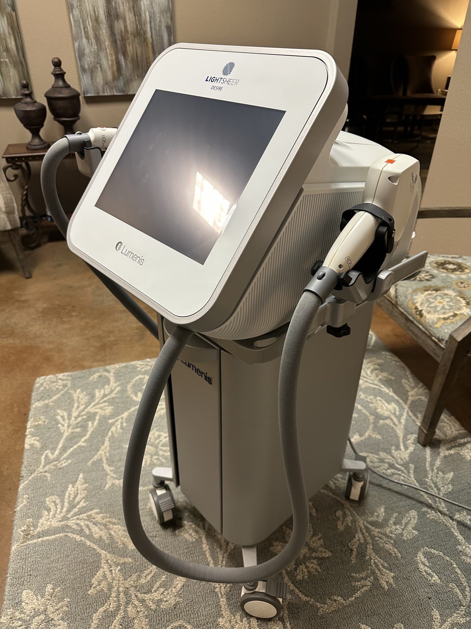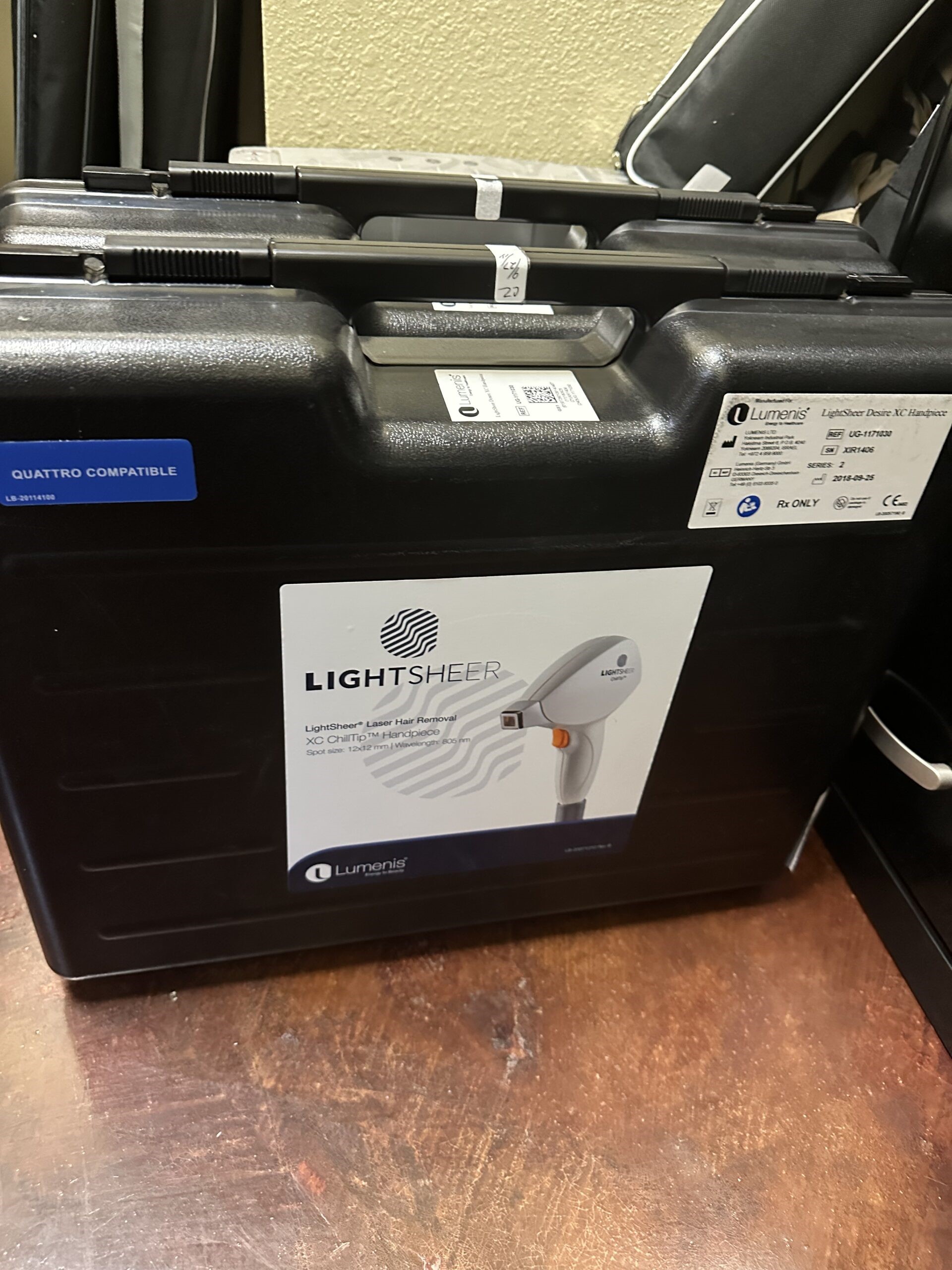 The Lumenis Lightsheer Desire Laser Hair Reduction System uses vacuum-assisted technology for permanent hair reduction and the treatment of Benign pigmented lesions and benign vascular lesions. Safe and effective. The DESIRE comes with 3 handpieces designed to treat various areas of the body.