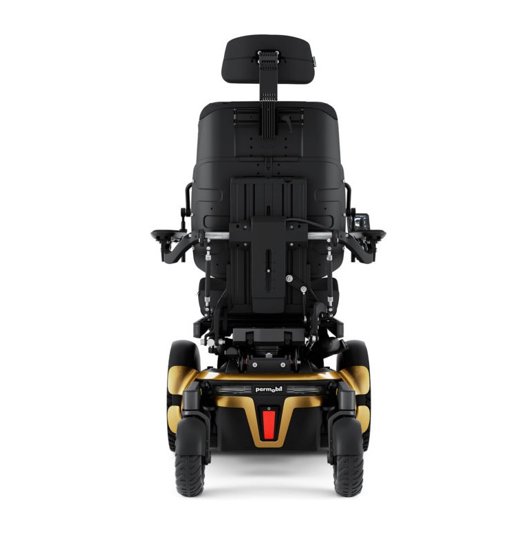 ActiveReach™ technology enables you to reach for more by creating 4.5″ of additional reach. This can be used for reaching beyond obstructions, into high cabinets, or even assist in transfers. Truly putting your world into reach. While functional reach and transfers are improved using a seat elevator, many functional tasks are still limited as the chair is positioned sideways to the task at hand or your knees are unable to remain under tabletops. Permobil’s ActiveReach™ pairs 12″ and 14″ of seat elevation with functional reach packages so that your world is in reach while also allowing for a variety of possible transfer positions.