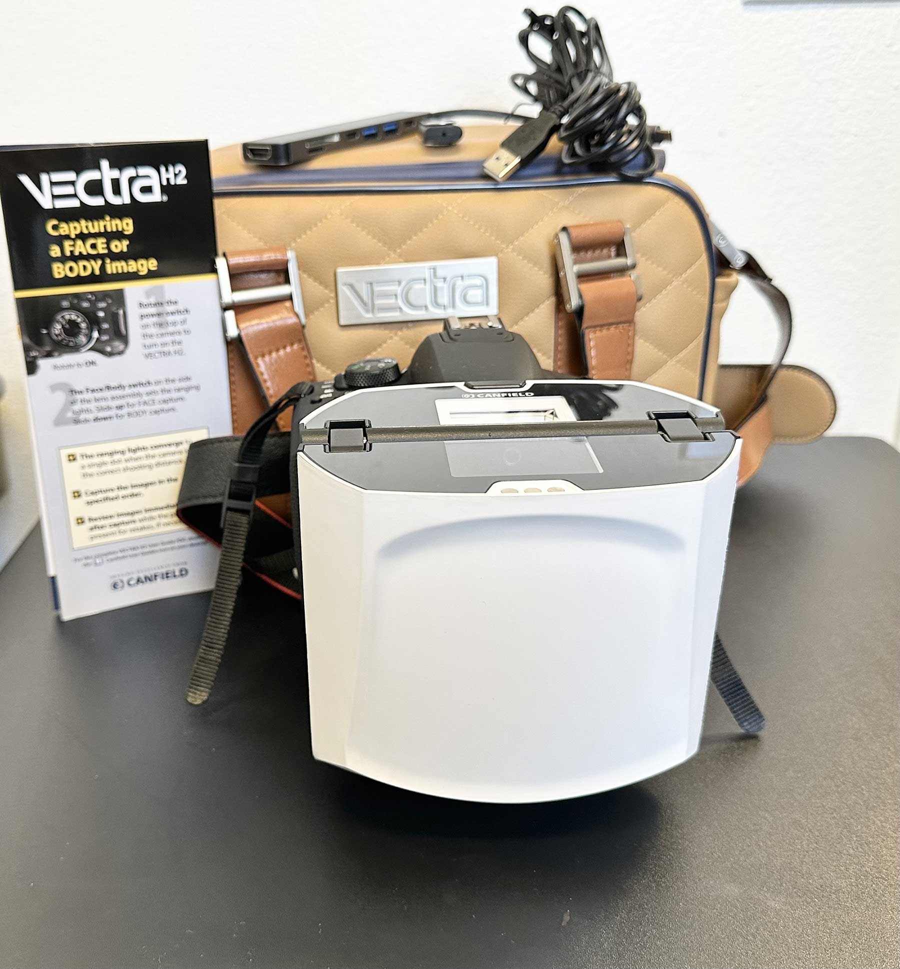 VECTRA H2 by Canfield is a 3D imaging system for Face and Body. This camera features lighting and flash systems to allow for capture high-resolution images. These images are imported into the special software system. This software allows for the assessment of tissues and exploration of the potential results surgical or non-surgical treatments may achieve.